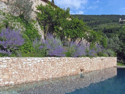 As we gaze at the row of Perovskia and Gaura above the pool, Alisandra tells me that she has a hard time finding such plants. Local nurseries stock the usual shrubs, trees, and annuals, but perennials are difficult to locate. She has to drive about 120 miles to Florence to find them.