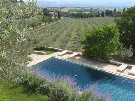 As my husband and I vacation in Umbria, Italy, I think of these tourists and their desire to take blue hydrangeas home. The view from the villa where we are staying is of olive groves and fig trees. The tall, dark green Italian cypress trees punctuate the landscapes and roadsides. Part of me wants to be able to have these in my garden, but I realize that if I could grow them, visiting this lovely region wouldn’t be as extraordinary an experience.