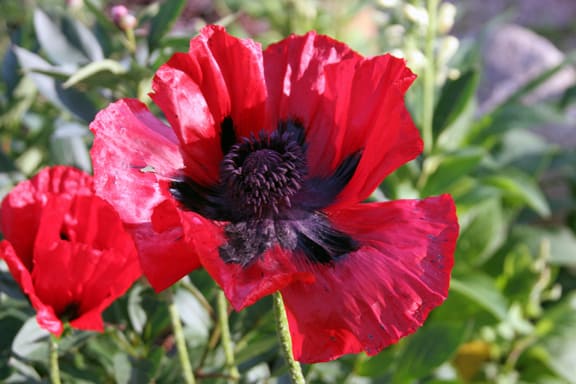 I recently posted that I don't really care for Siberian Iris - they bloom for such a short time, and they need dividing every time you turn around. Poppies, however, call to me. They have a short season of bloom, but every morning that I see the rising sun shining on a newly opened flower, my spirits sour.