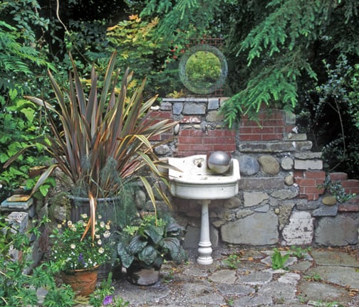 I love to see or walk though many types of gardens, and absolutely believe that there isn’t one right way. Yet I personally respond positively to gardens that have a mix of recycled stone, brick or concrete to offset the plants. There is something about the combination of static and growing, hard and soft, new and old, and less than perfect that pleases me.