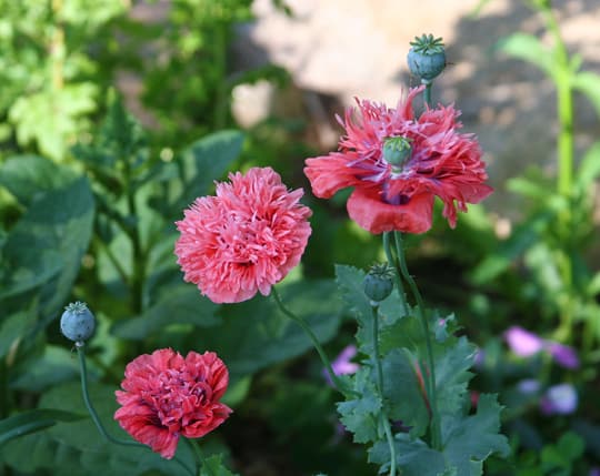 Some of the flowers are singles but most are fluffy doubles. Beautiful. I think that from now on they’ll grace these gardens, moving around and finding places among the perennials. These self-seeders embody many of the things we find in our gardens: surprise, color, the generosity of other gardeners and the willingness to let nature have a say in garden design. And they are heartbreakingly lovely. Thanks, poppies, thanks, Chris and thanks, gardens.